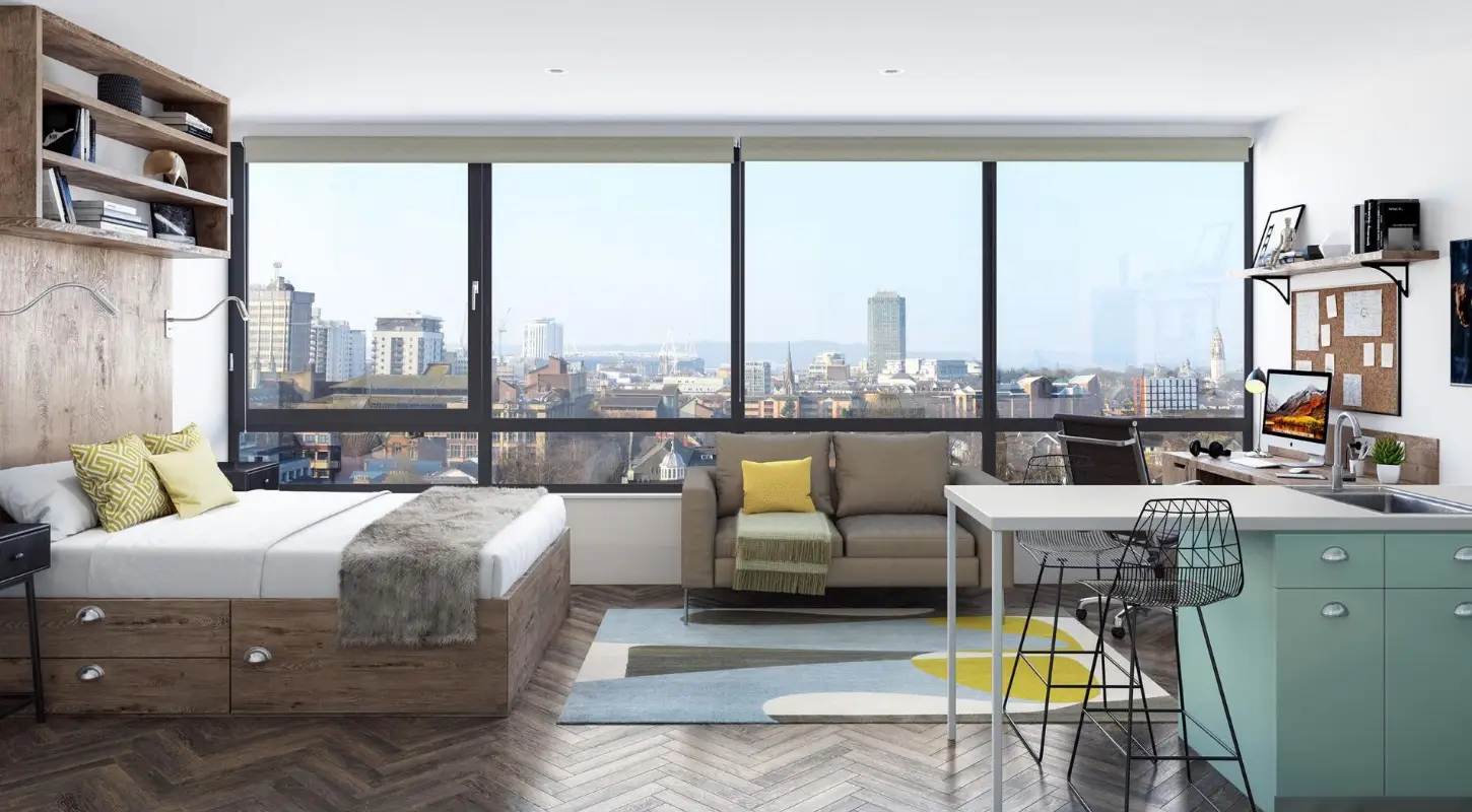 Bridge Street’s central location makes it a great place to stay whilst studying in Cardiff. This student hall has rooms overlooking the harbour and famous landmarks and is close to all of the universities in the city. There’s a choice of en-suite rooms, apartments or en-suite studios, all of which have access to social spaces such as the gym, TV lounge, dining area, and karaoke room.