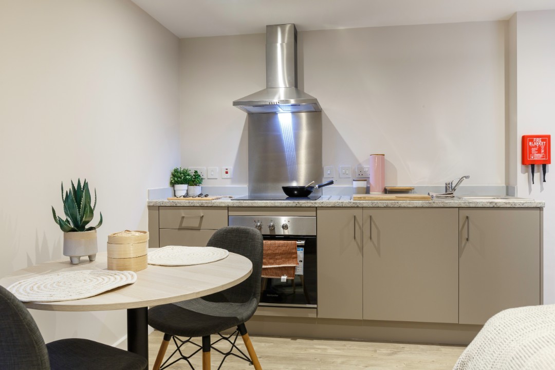 Bailey Fields have multiple room options available; from ensuite rooms to private studios. The ensuite rooms have shared living and kitchen spaces, fitted with a TV to make hanging out at home more fun for you and your flatmates. The private studios some with a double bed and a small kitchen. Or, you can book a 1 bedroom apartment or a duplex (a flat across 2 floors). Prices start at £133 per week.