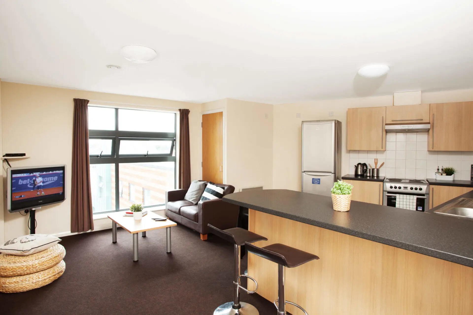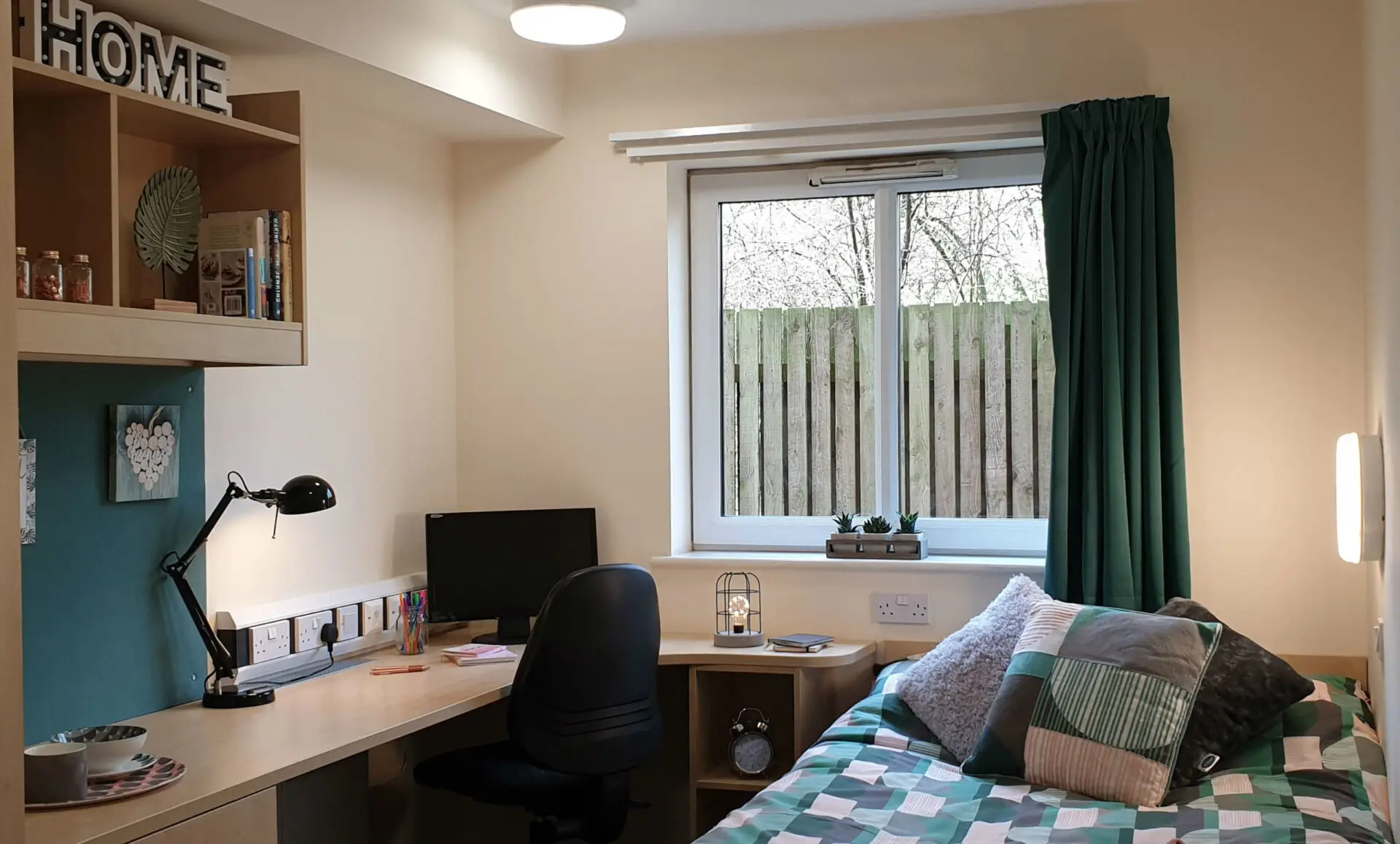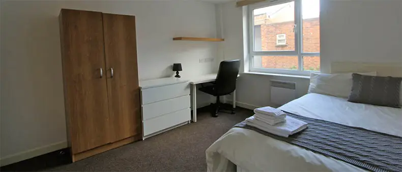 Just 15 minutes away from the university, The Cube comes with flat-screen TVs, free bus passes, a communal area, strong and reliable WiFi, and plenty of great rooms to choose from. All rooms are equipped with a 3/4 or double bed with storage space, and then you can choose between a shared kitchen and lounge (with 42″ TV) or a spacious studio room. Prices start at £106 per week.