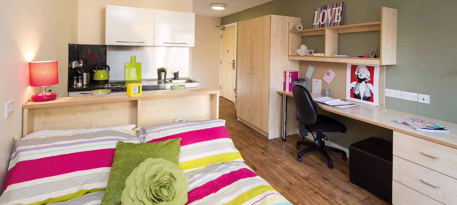 An 11-minute walk from Loughborough University, Optima provides modern, sleek self-contained studios. Some are split-level, and there are various sizes to allow for different student budgets, and there is a shuttle bus between the town and uni for those looking to get out and about. Prices start at £140 per week.