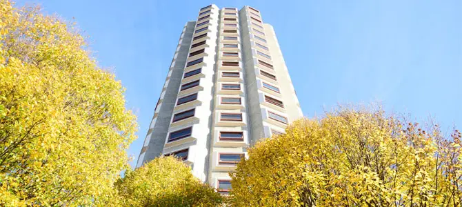 In the centre of the city, The Block is a great choice. It’s modern, luxurious and very convenient. The ensuite rooms are well dressed with modern furnishings, and the kitchens have large seating areas to cook and work on. Each bedroom has a private study space, and they look out across the city. In addition to ensuite rooms, there are premium one and two-bedroom penthouse flats available. Prices start at £116 per week.